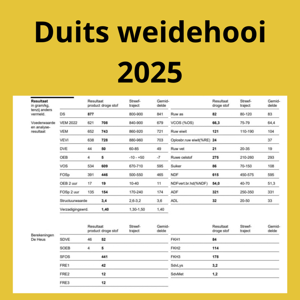 Onze ruwvoeranalyses worden gemaakt over een partij hooi. De analyse geeft dus een gemiddelde waarde van de betreffende partij. Dit betekent dat de waardes tussen balen altijd iets kunnen verschillen, een analyse is wat dat betreft dus altijd een “momentopname” en biedt geen garantie.